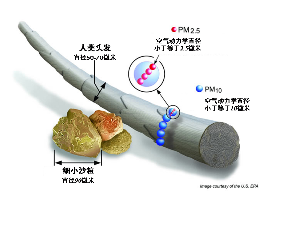 In recent years, with the frequent haze events in China, PM2.5 the originally obscure jargon began into the folk, has become a hot topic in the streets of heat. But for the initial contact with the people in the term, "PM2.5" and the associated with a series of terms of PM10, TSP "may make people feel somewhat foggy and incomprehensible. In fact, noun of countrywide science and technology appraisal committee has in February 2013 to PM2.5 a easy to understand Chinese name -- fine particulate matter ", which" PM "is English contents matter (particulate matter) acronym, and" 2.5 "emphasis is particles suspended in the atmosphere aerodynamic equivalent diameter is less than or equal to 2.5 microns in that part. PM2.5 particle size is very small, probably less than the diameter of a human hair twenty one (Figure 1), which can be in the atmosphere retention for up to several days long, even transported to the far distance, thus affect atmospheric visibility and human health and climate change on regional and global scales.