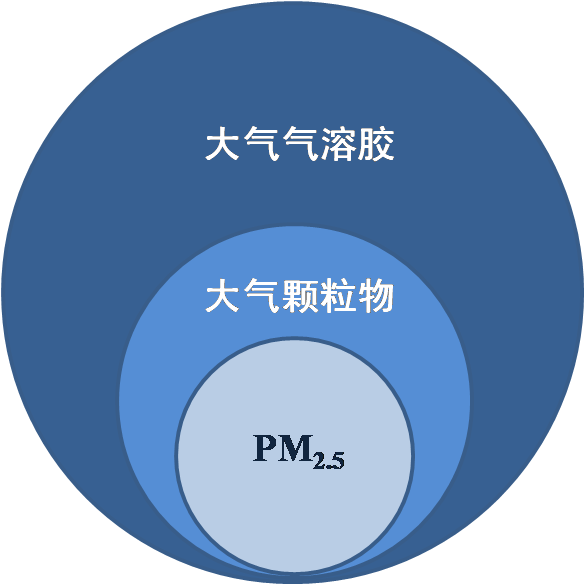 Fig 3 Schematic diagram of the relationship between PM2.5, atmospheric particulate matter and atmospheric aerosol